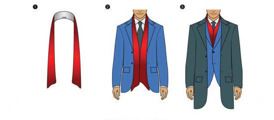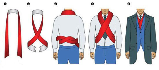 圍巾搭在脖子上,兩端在胸前交叉并從腰兩側繞至身后,在背后打上結,可以作為西服的內搭。適合長款圍巾和不太冷的天氣。