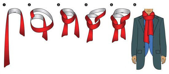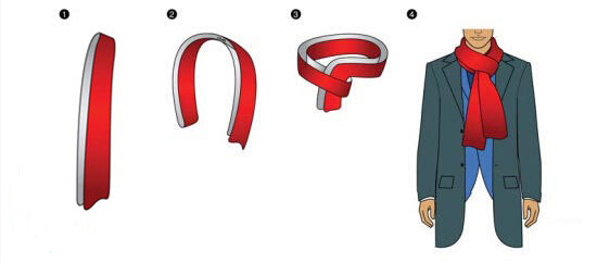 也是常用系法之一,將圍巾對折后搭在脖子上,散開的一端穿插進閉合的一端,再拉緊,我們稱之為“男士圍巾的中國結系法”。適合長款圍巾和較冷的天氣。