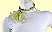 建議最好選用質地輕柔的淺色調絲巾,利用美麗的絲巾結成花狀系在頸側,不僅造型更具立體感,也使臉龐增色不少,起到一個畫龍點晴的作用。