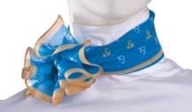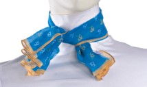 最好選用質地富有張力的絲巾,可以保證系后的絲巾領結外形標致。用帶有鑲邊的絲巾,更能突出此種系法所特有的富有層次的絲巾褶。搭配與花邊顏色相近的長裙,更顯嬌柔甜蜜。