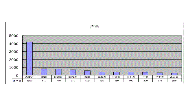 5.甘肅省:年產(chǎn)羊線410噸,主要集中在肅北、肅南以及慶陽地區(qū)的還縣、花池、合水等地。其特征:纖維較粗,含雜少,洗凈率高,凈絨率達46%左右,平均細(xì)度15.5um,長度較短在40mm左右