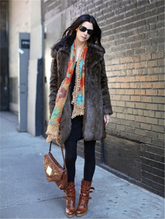 貴婦氣質的貂皮大衣氣場爆棚,搭配一條橙色印花圍巾,帶來熱情的溫柔的女人氣息,時尚指數up!優雅又有型。