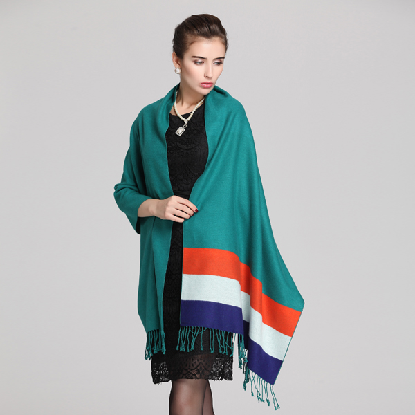 秋冬條紋披肩