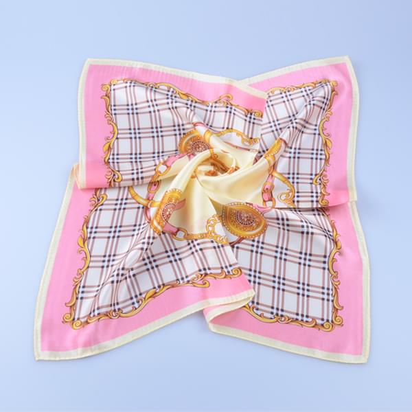素縐緞印花方巾